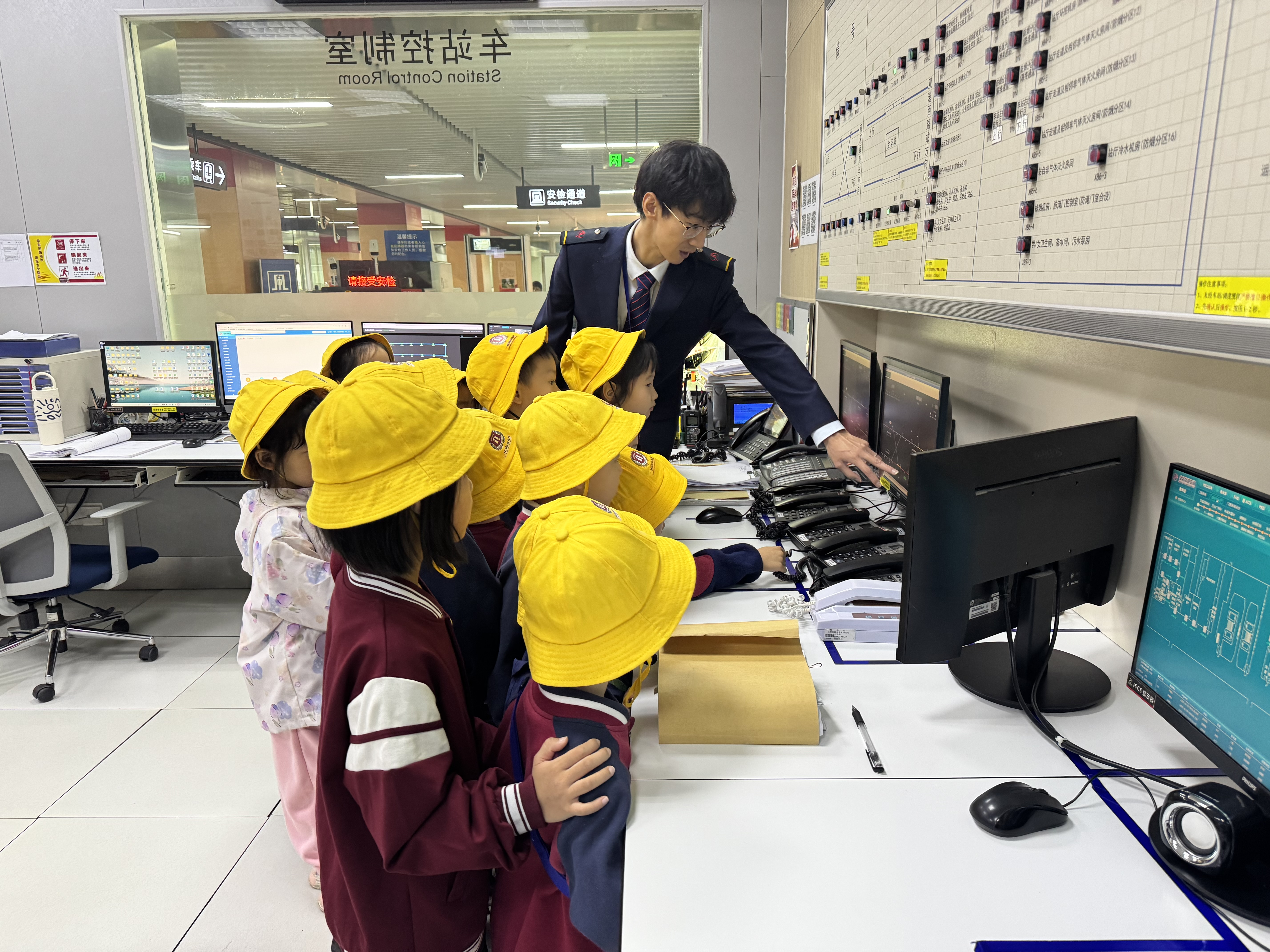 “這里就是控制整座車站運行的‘最強大腦’!”在工作人員的引導(dǎo)下,孩子們走進“神秘”的車控室。綜合監(jiān)控顯示的列車運行信息、站臺實時畫面,引來孩子們陣陣驚嘆。“哥哥,這個屏幕能看到我家附近的車站嗎?”“那個紅色按鈕是做什么的?”面對大家充滿想象力的提問,工作人員耐心解答,并邀請他們輪流觀察監(jiān)控屏幕,近距離感受科技護航安全的魅力。