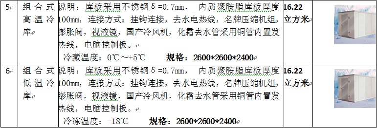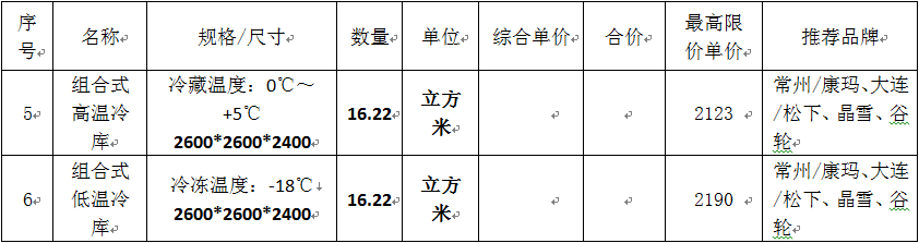 2.塘雅車(chē)輛段綜合樓廚房設(shè)備清單報(bào)價(jià)表中序號(hào)5、組合式高溫冷庫(kù)以及序號(hào)6、組合式低溫冷庫(kù)的規(guī)格、數(shù)量及單位進(jìn)行修改,詳見(jiàn)下表: